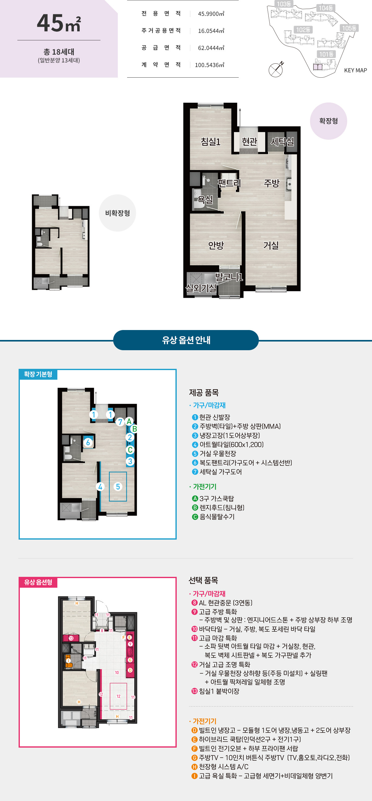 이번 단지는 중소형 면적 중심으로 설계되었으며, 1~3인 가구에 최적화된 실용적인 평면을 제공합니다. 판상형 구조와 남향 위주 배치는 물론, 채광과 통풍을 극대화한 설계로 편안한 주거 환경을 조성했습니다.