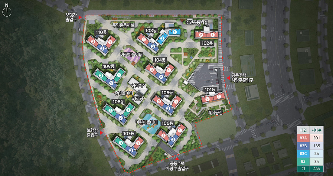 - 주거 형태 및 구성: 지하 2층에서 지상 18층까지 총 10개 동, 총 444세대