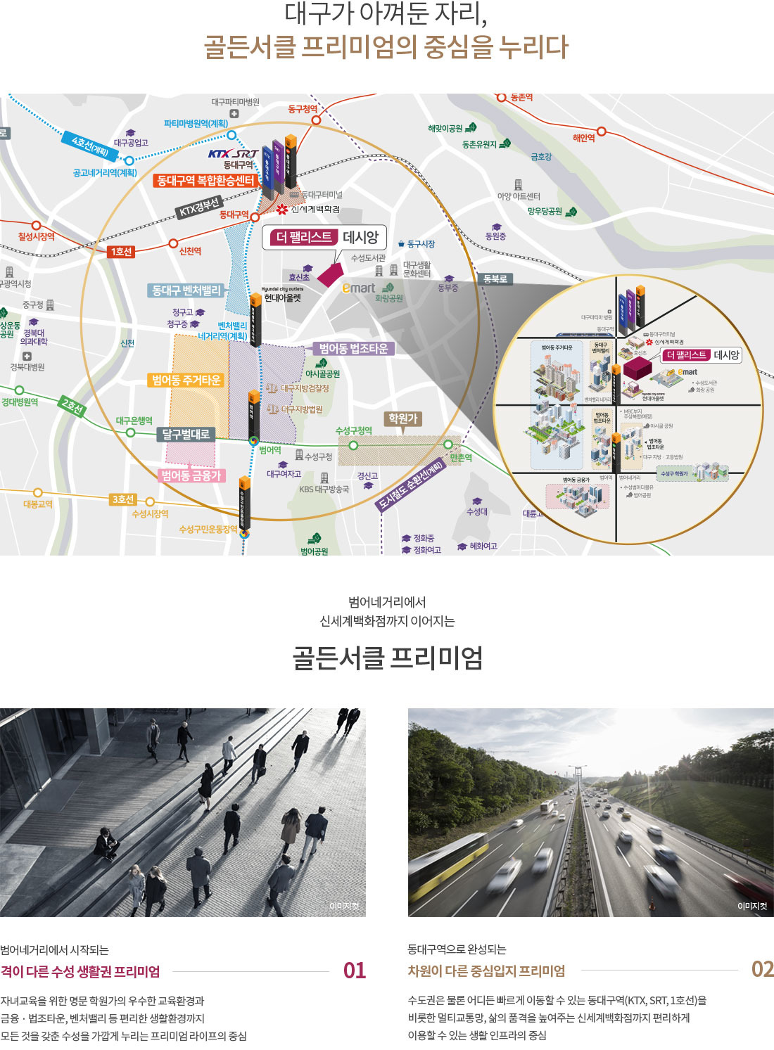 - 고속철도: 동대구역(KTX/SRT)까지 차량으로 약 5분 소요, 대구 외 지역으로의 이동이 매우 용이합니다.