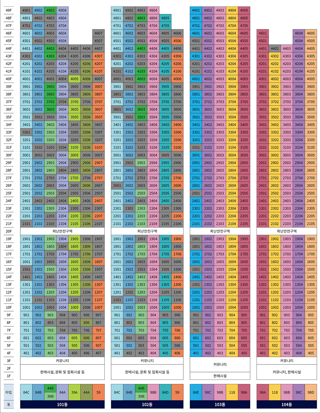 • 단지 규모: 지하 8층에서 지상 49층까지, 5개 동으로 구성된 대규모 단지입니다.