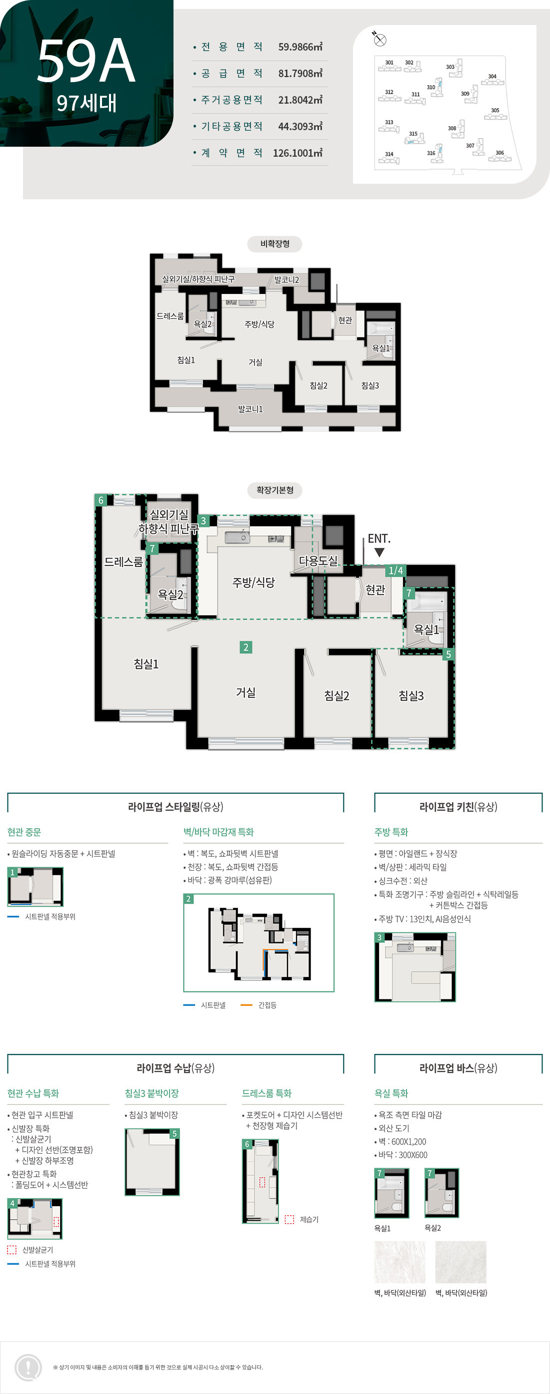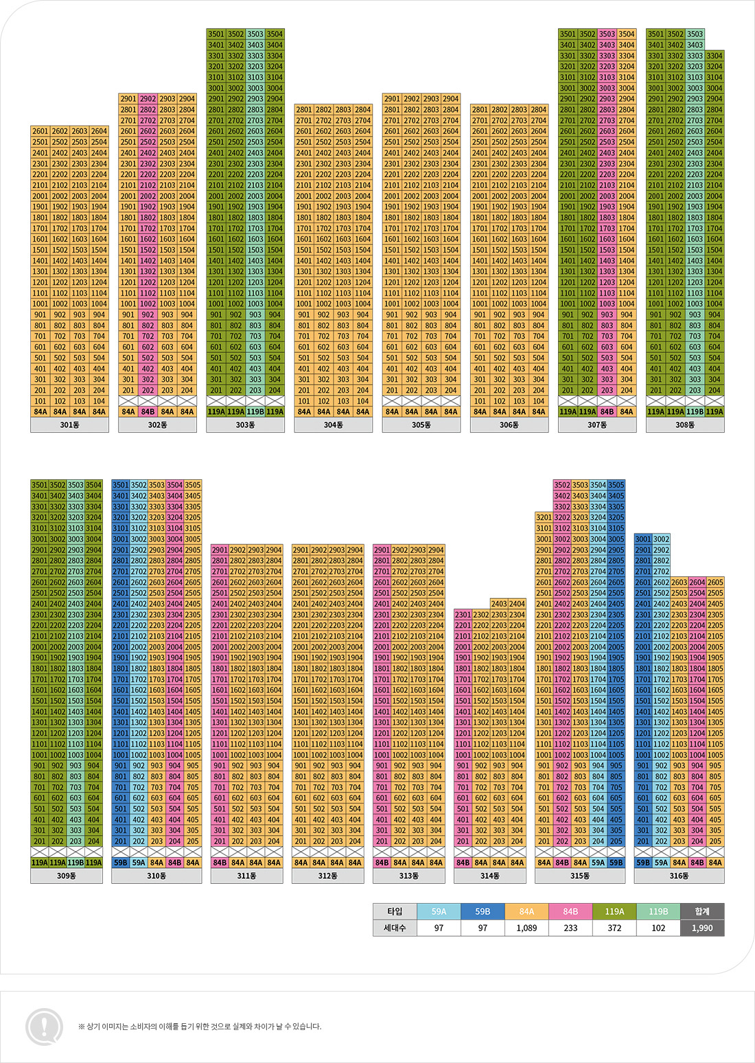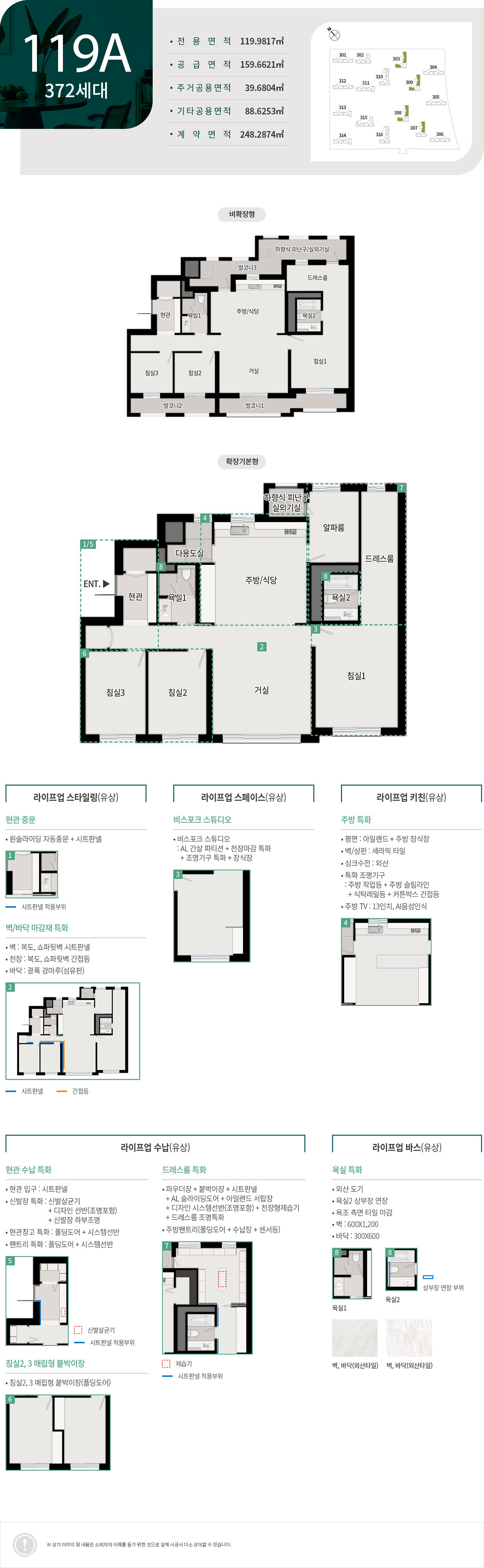 - 전용면적: 59㎡, 84㎡, 119㎡
