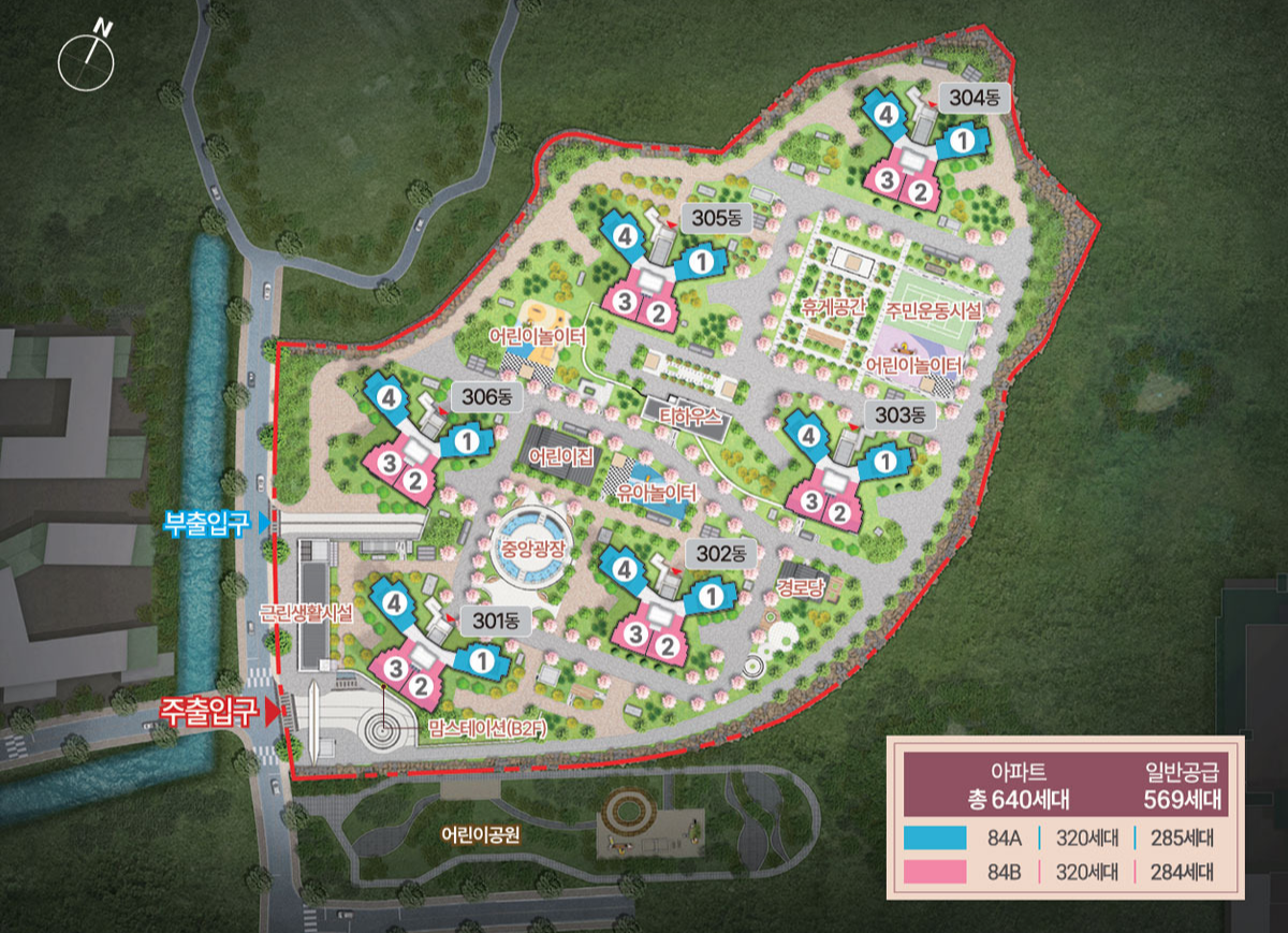 구성: 지하 3층 ~ 지상 27층, 6개 동, 총 640세대