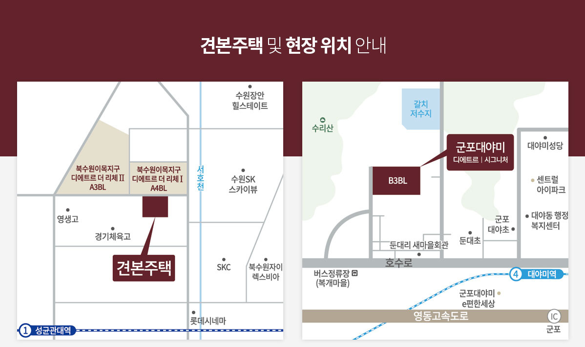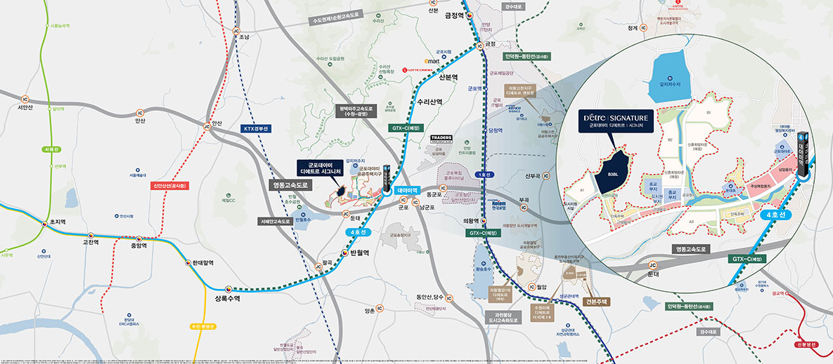 군포 대야미 디에트르 시그니처는 편리한 교통망과 쾌적한 자연 환경을 모두 갖춘 지역에 위치해 있습니다.