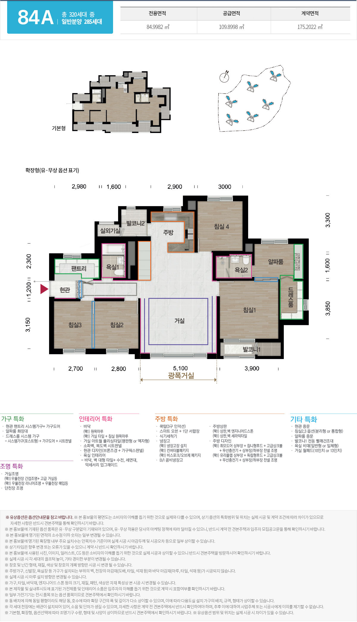 특화 설계: 4-bay 구조, 5.1m 광폭 거실 등