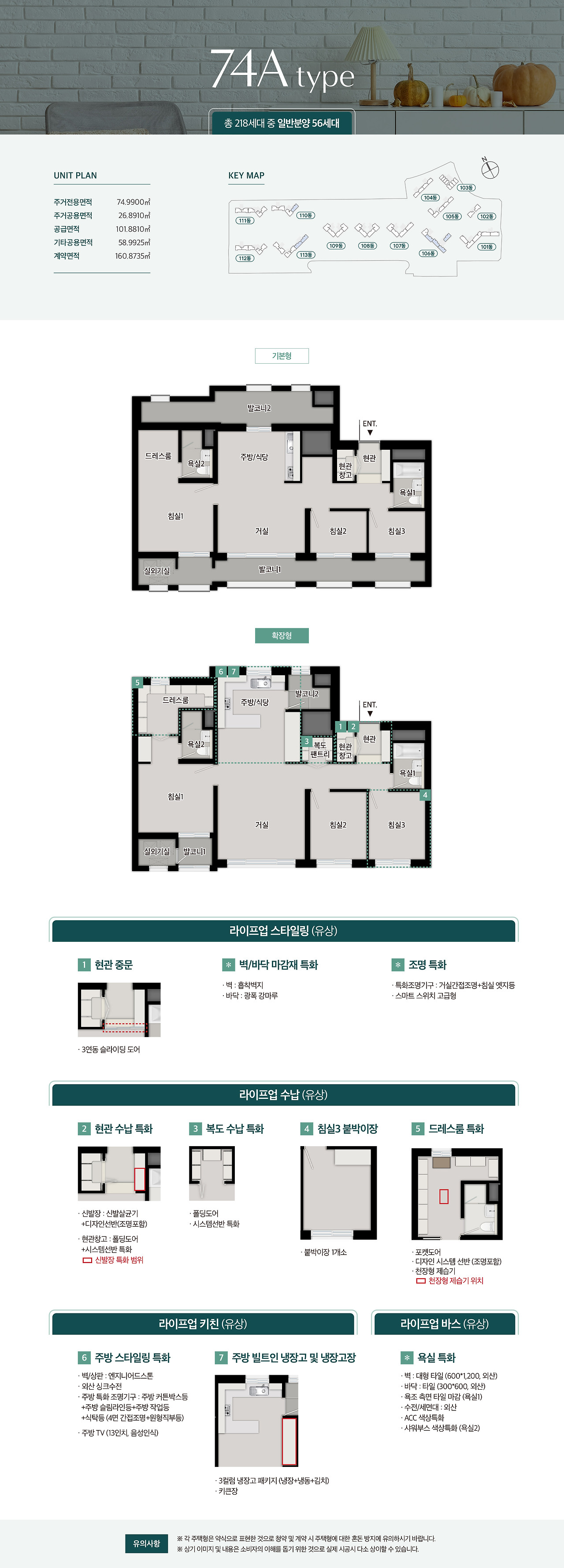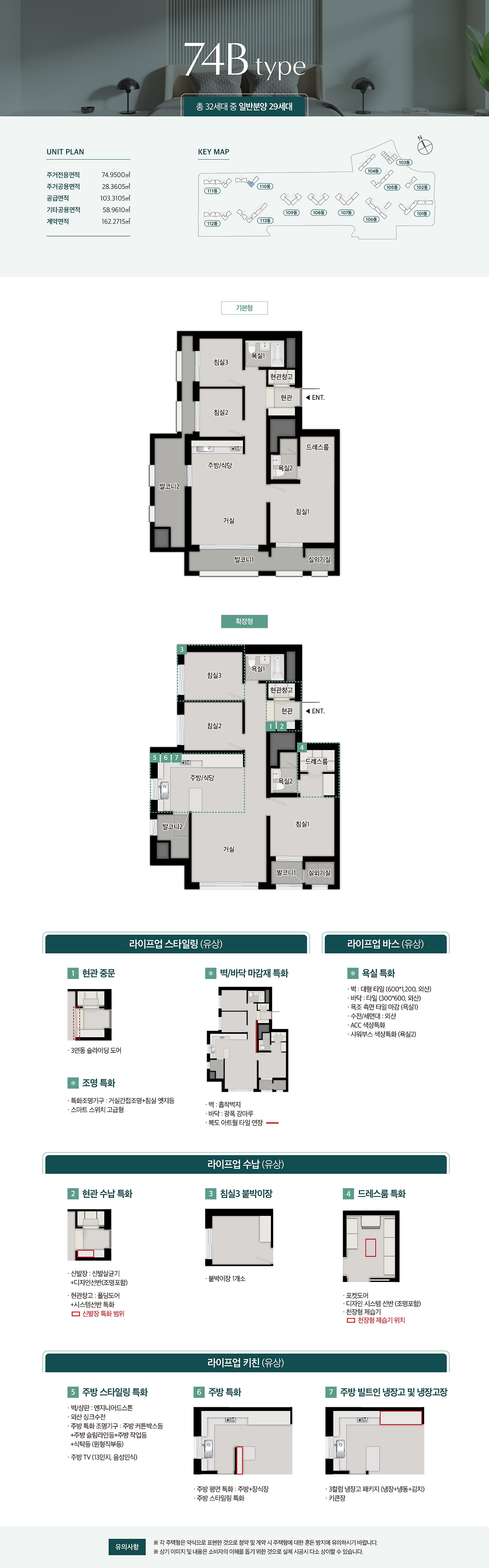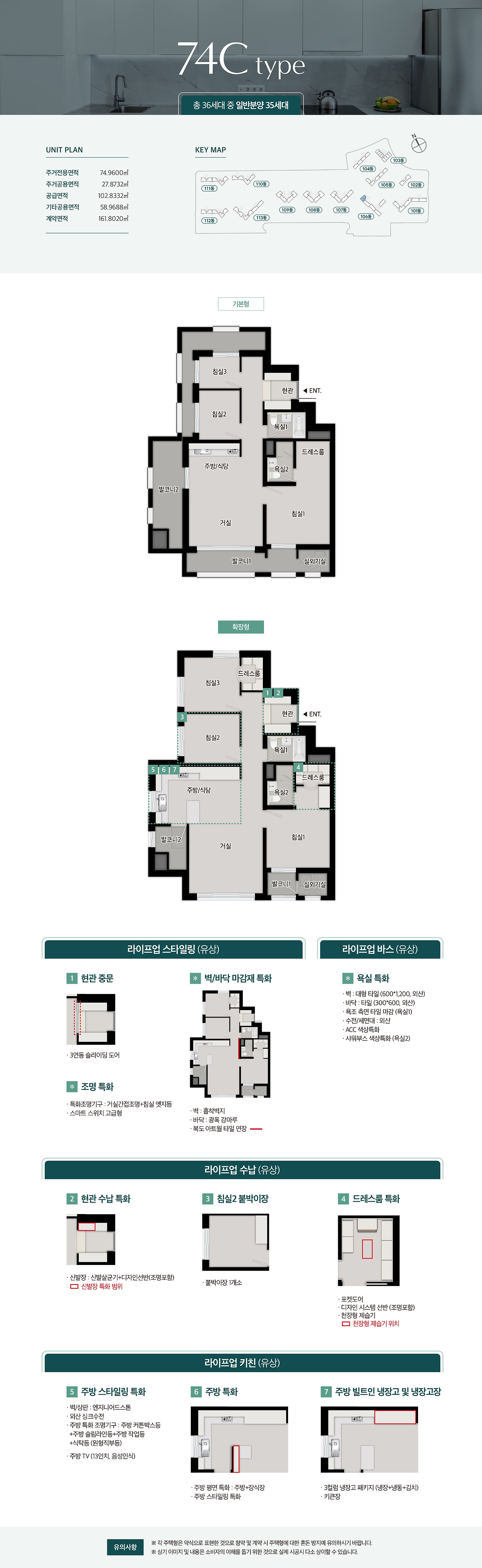 - 74㎡ 타입: 공간 활용이 뛰어난 중형 평형