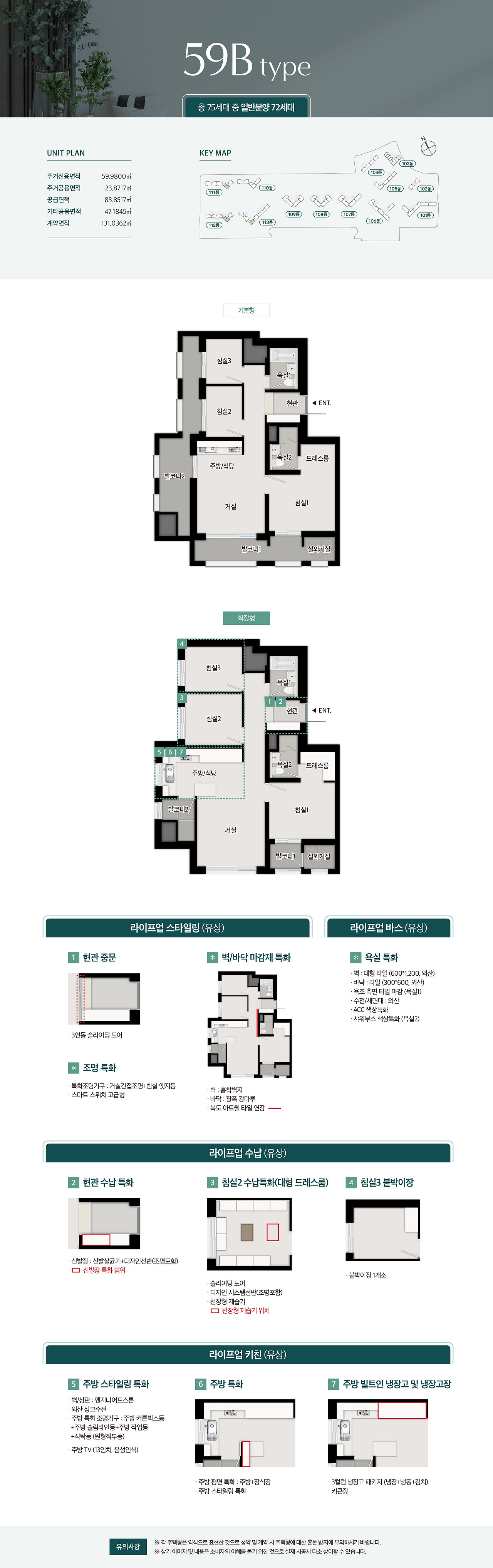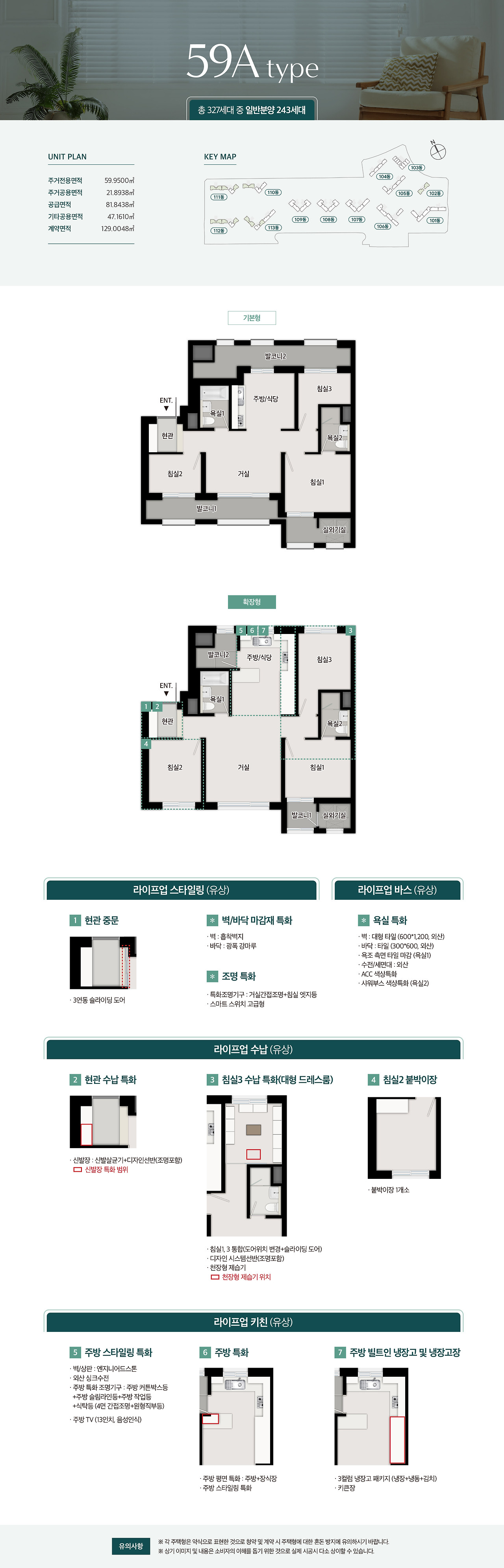 - 59㎡ 타입: 신혼부부 및 소형 가구를 위한 실용적인 구조