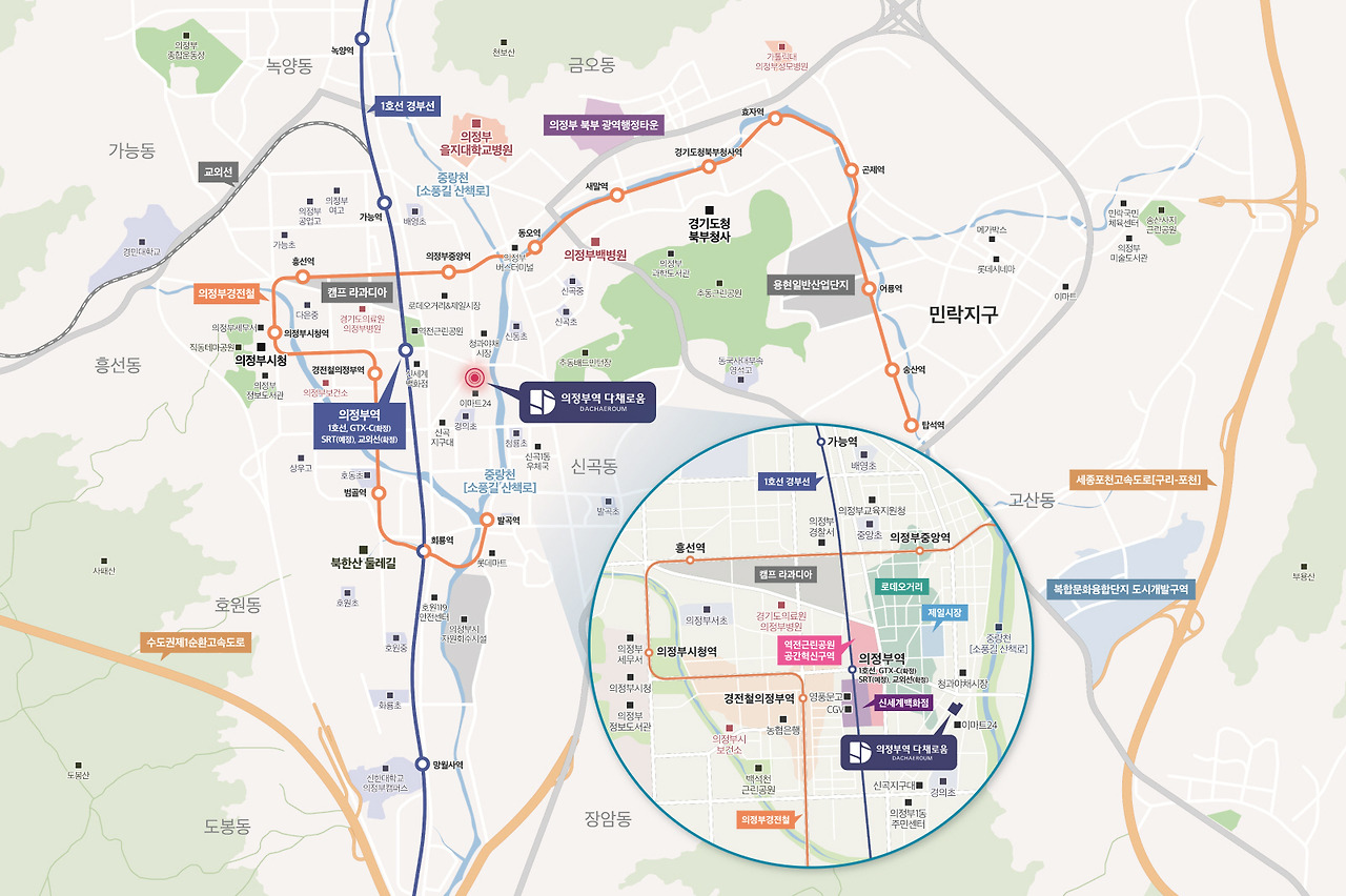 - 의정부역: 지하철 1호선 및 GTX-C 노선 예정