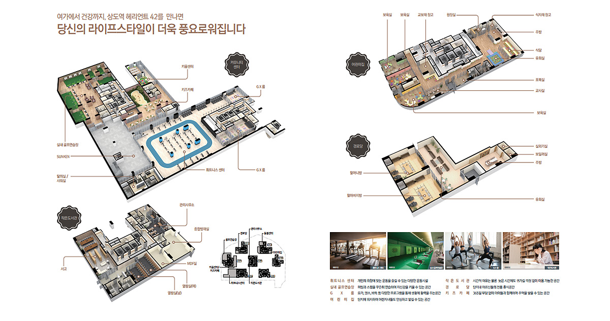 상도역 헤리언트42는 고급 커뮤니티 시설을 제공해 입주민들에게 차별화된 주거 환경을 제공합니다. 단지 내에는 어린이집, 피트니스 센터, 실내 골프 연습장, GX룸, 시니어 센터 등 다양한 편의 시설이 갖춰져 있으며, 첨단 IoT 시스템이 적용된 스마트홈 기능이 도입될 예정입니다. 이와 같은 고급 커뮤니티는 입주민들의 만족도를 높이고 편리한 생활 환경을 제공합니다.