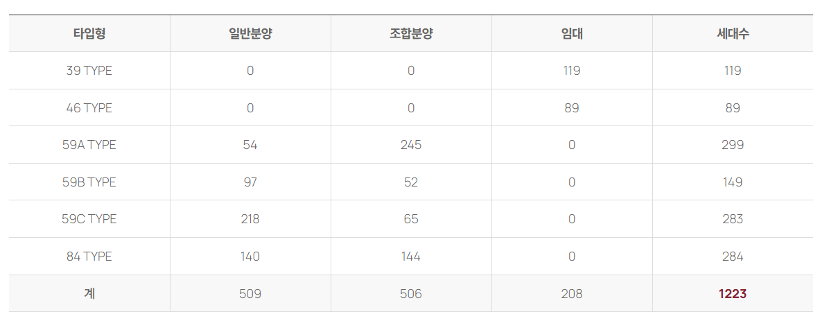- 공급 면적: 전용 59㎡, 84㎡ 두 가지 타입