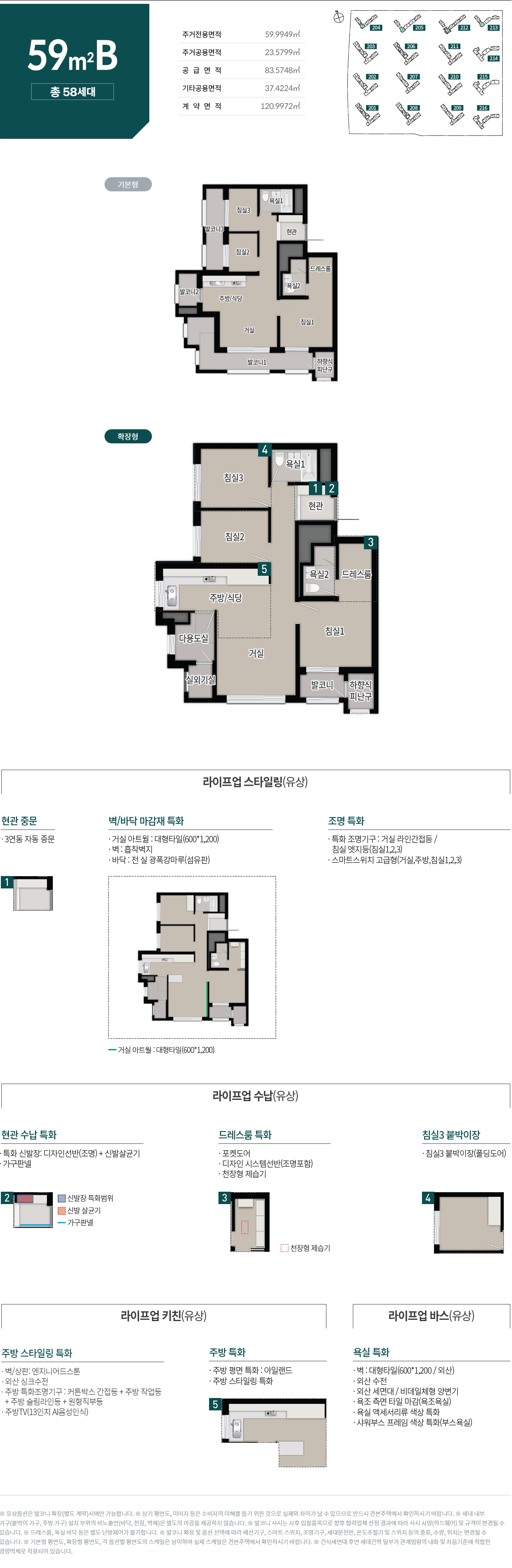 - 전용면적: 59㎡ ~ 136㎡. 다양한 면적으로 구성되어 있어 1인 가구부터 대가족까지 다양한 주거 수요를 충족시킵니다.