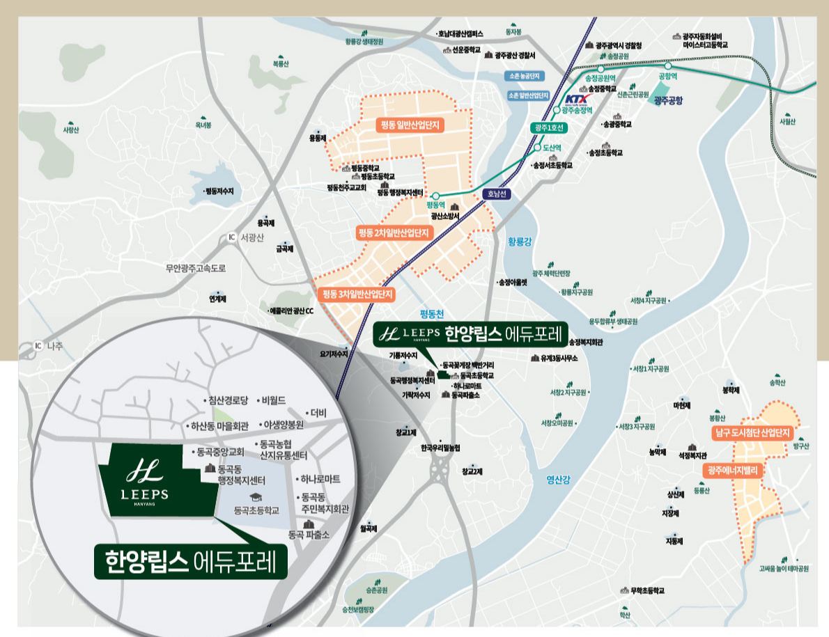 • 광주송정역 (KTX·SRT): 단지에서 차량으로 약 10분 거리