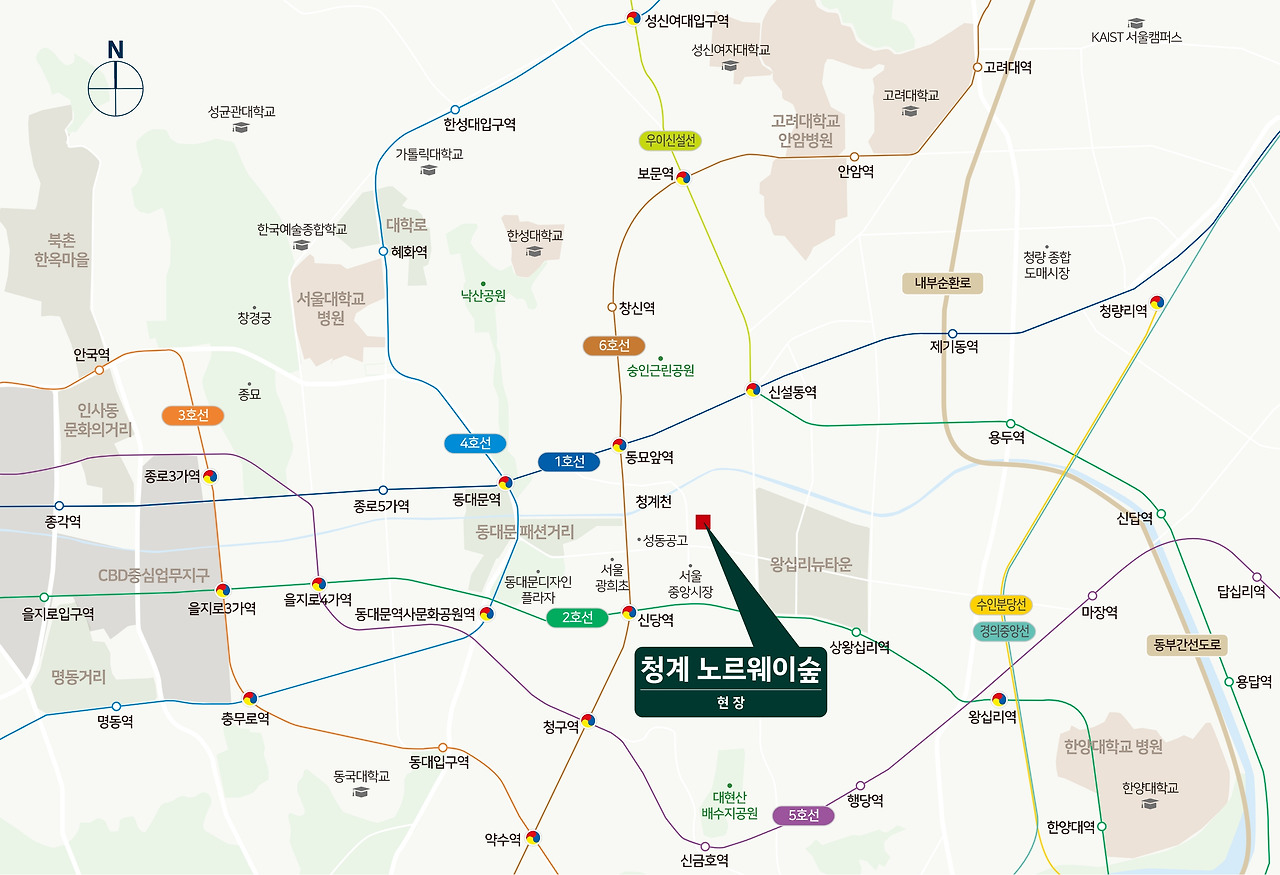 - 청계천 정비 완료로 친환경 주거지 이미지 강화