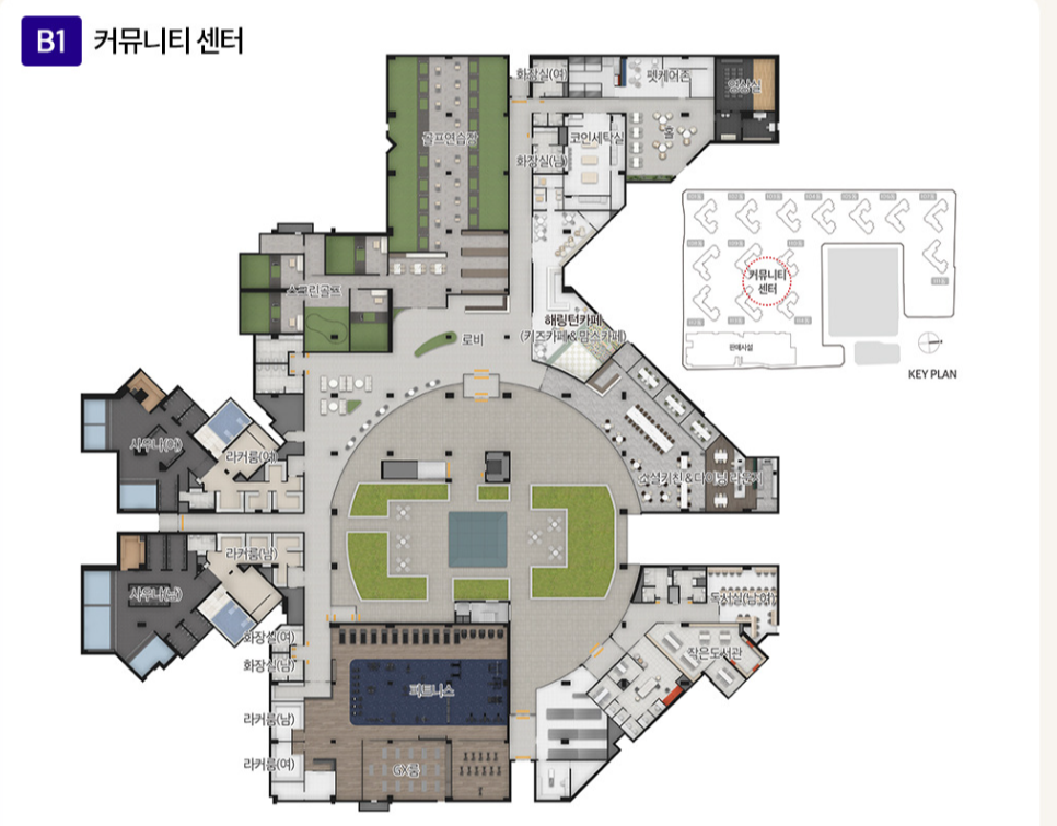 - 중앙광장, 어린이놀이터, 실내골프장, 피트니스센터, 작은 도서관 등 고급 커뮤니티 시설 예정
